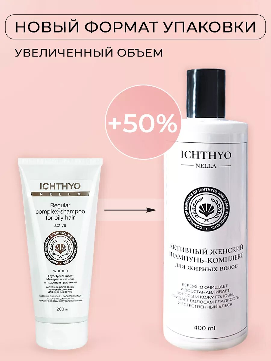 Активный регулярный шампунь-комплекс для жирных волос мужской ICHTHYONELLA 200ml