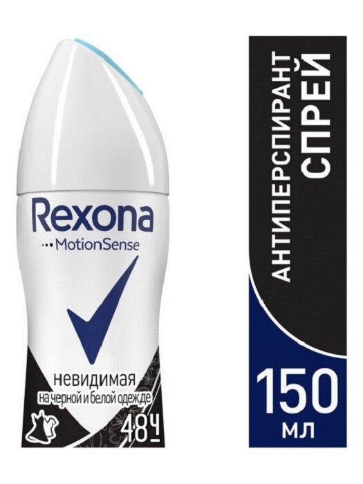 Rexona Антиперспирант MotionSense Невидимая на черной и белой одежде, спрей, 150 мл