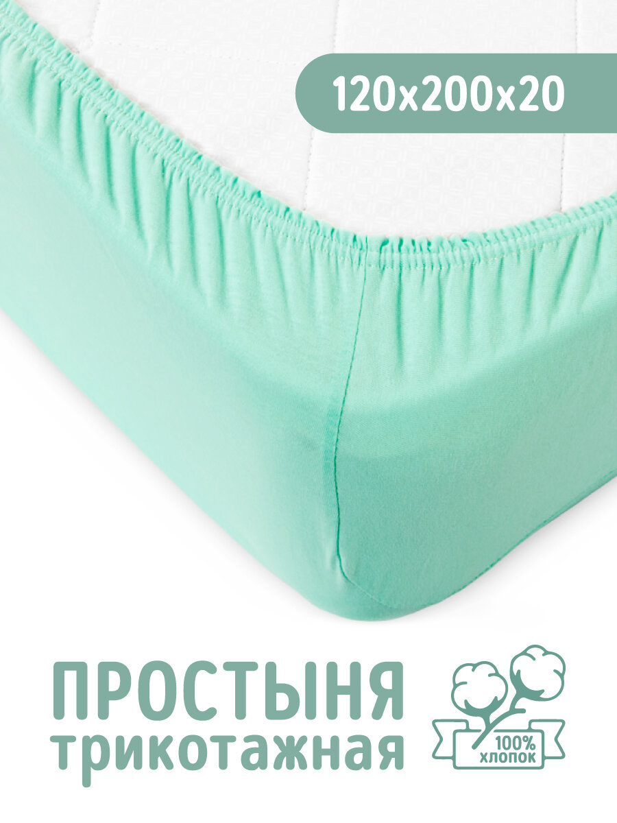 Простыня на резинке Мятная, 120х200х20, трикотаж, 100% хлопок