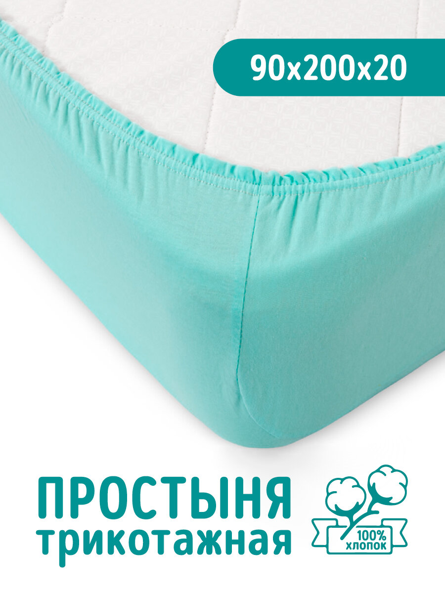 Простыня на резинке Мятная, 90х200х20, трикотаж, 100% хлопок