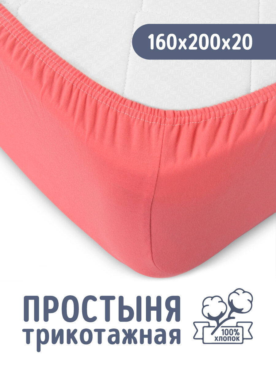 Купить Трикотажная простынь на резинке 160х200 Коралловая, 100% хлопок
