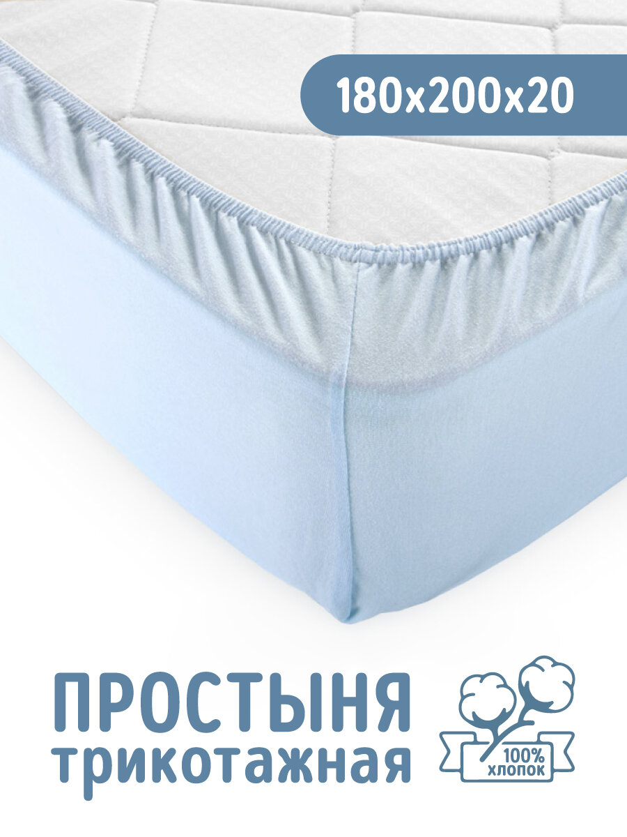 Простыня на резинке Небесный, 180х200х20, трикотаж, 100% хлопок