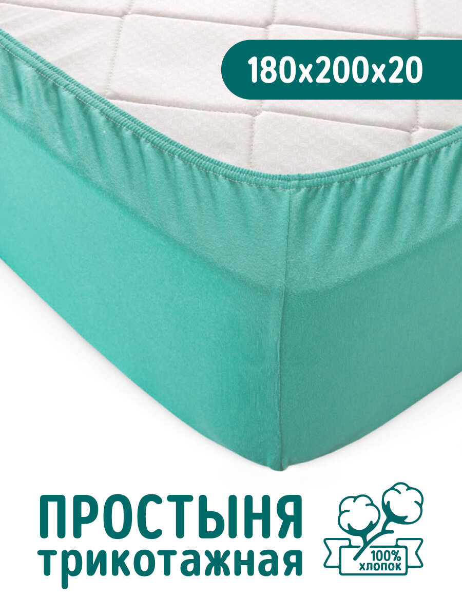 Простыня на резинке Бирюзовая, 180х200х20, трикотаж, 100% хлопок