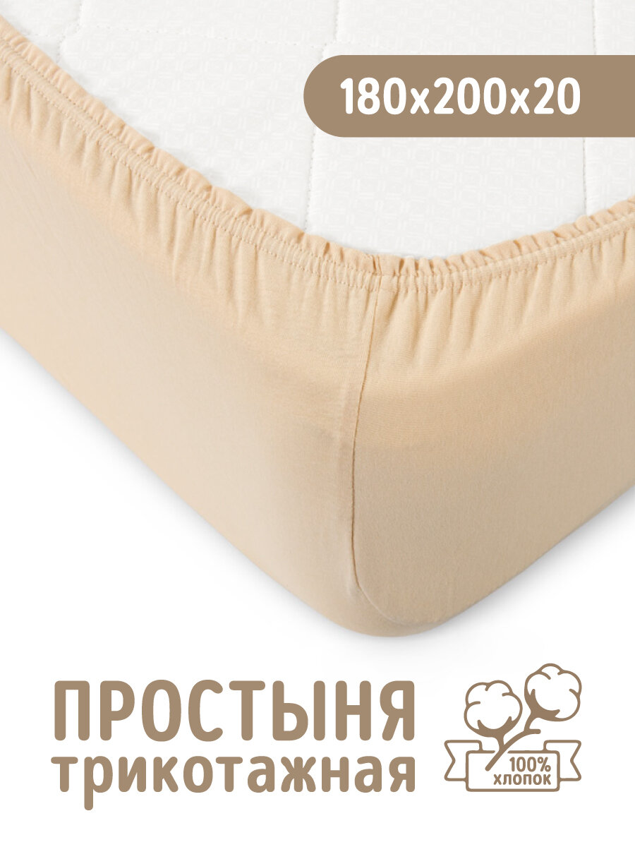 Простыня на резинке, размер 180х200х20 см, цвет бежевый, трикотаж