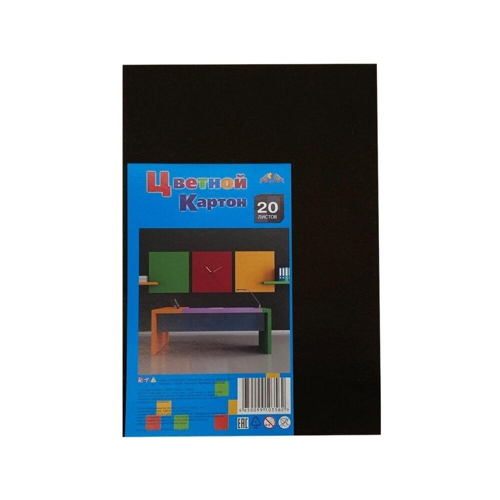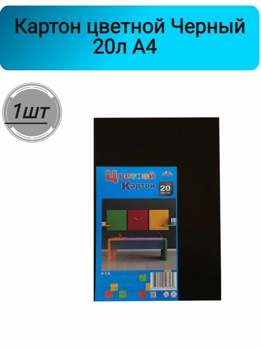 Набор цветного картона Офис Черный А4, 20 листов, 1 цвет, немелованный, без скрепления Апплика С2672-02 - 1 шт.
