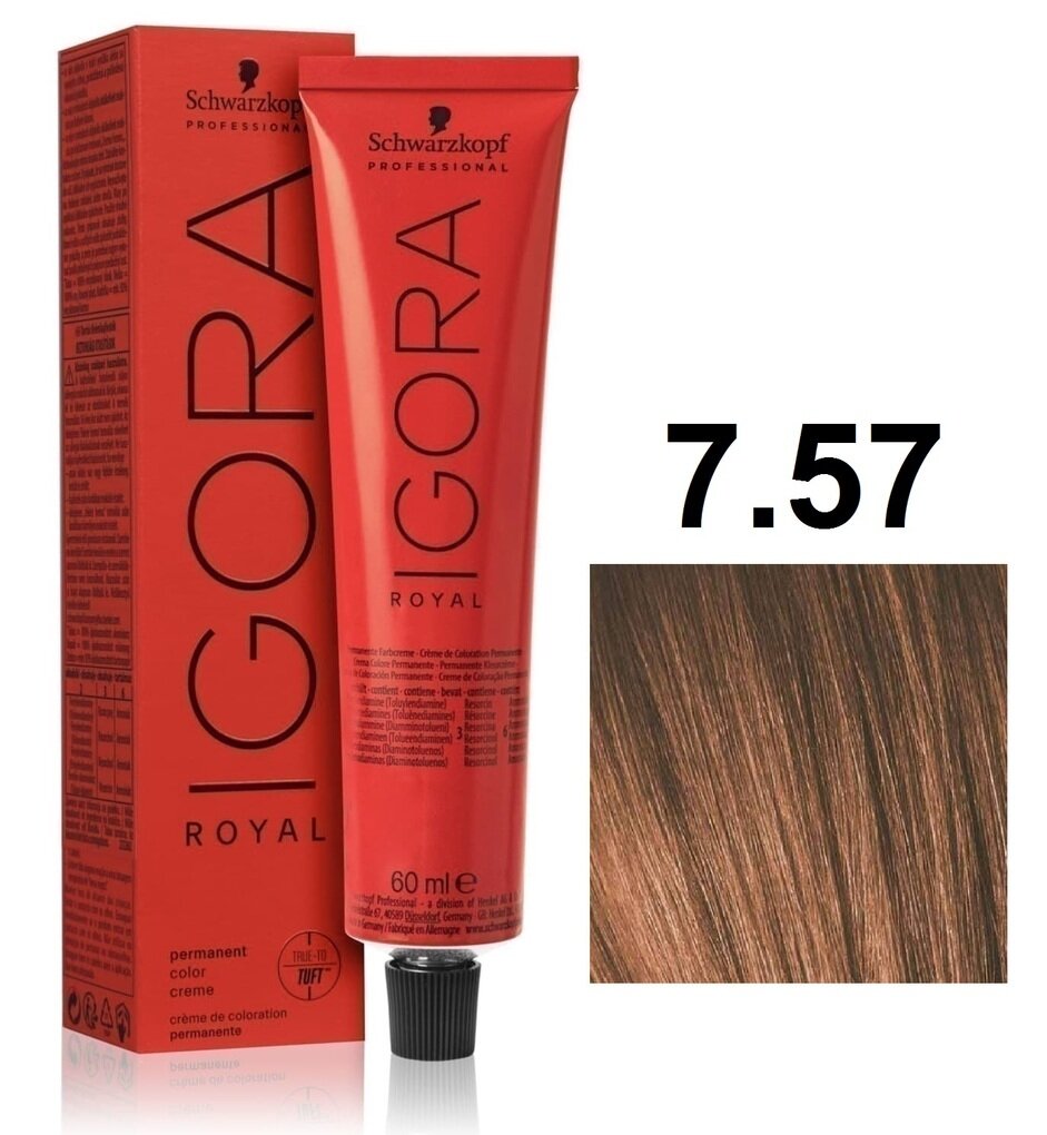 Купить Schwarzkopf Professional Igora Royal - Шварцкопф Игора Роял Стойкая крем-краска для волос, 60 мл - Роял 7-57 Средний русый золотистый медный