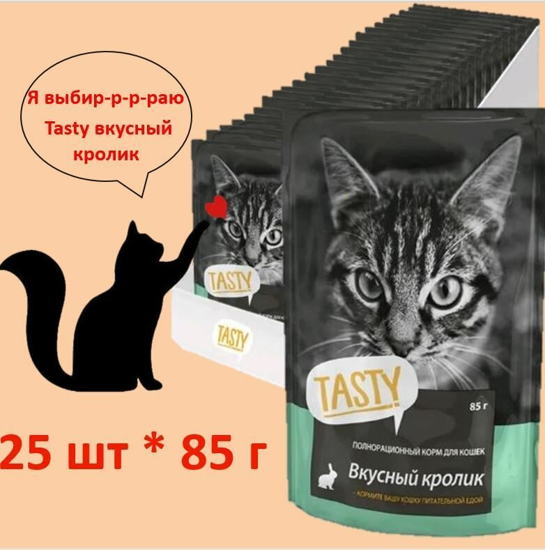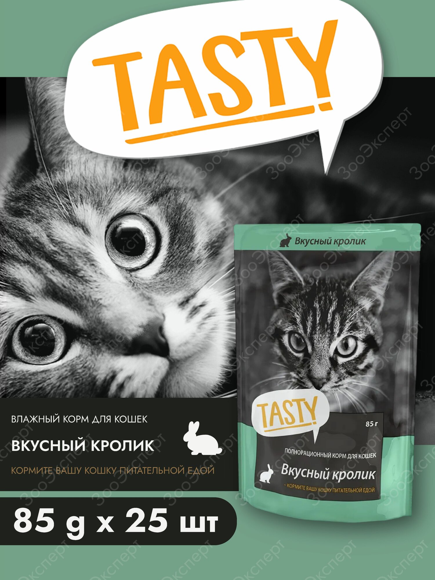 TASTY корм консервированный для кошек с кроликом в желе пауч 85г (25шт)