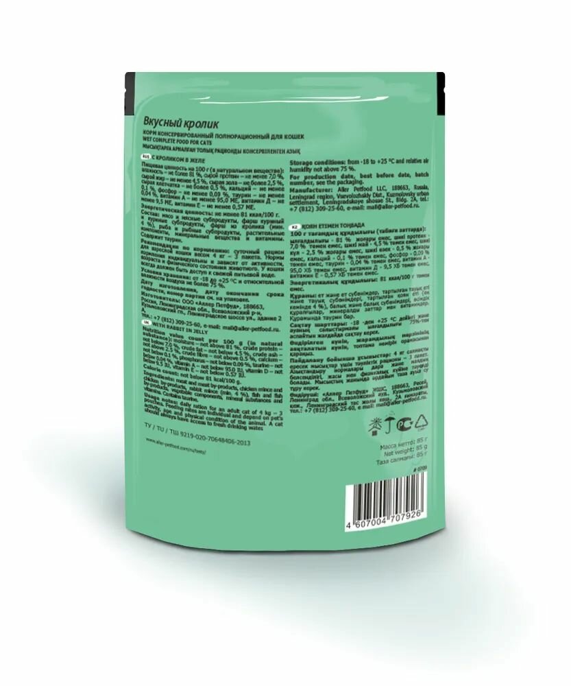 Tasty Пауч для кошек с кроликом в желе( 02TS792), 0,085 кг, 49812 (18 шт)