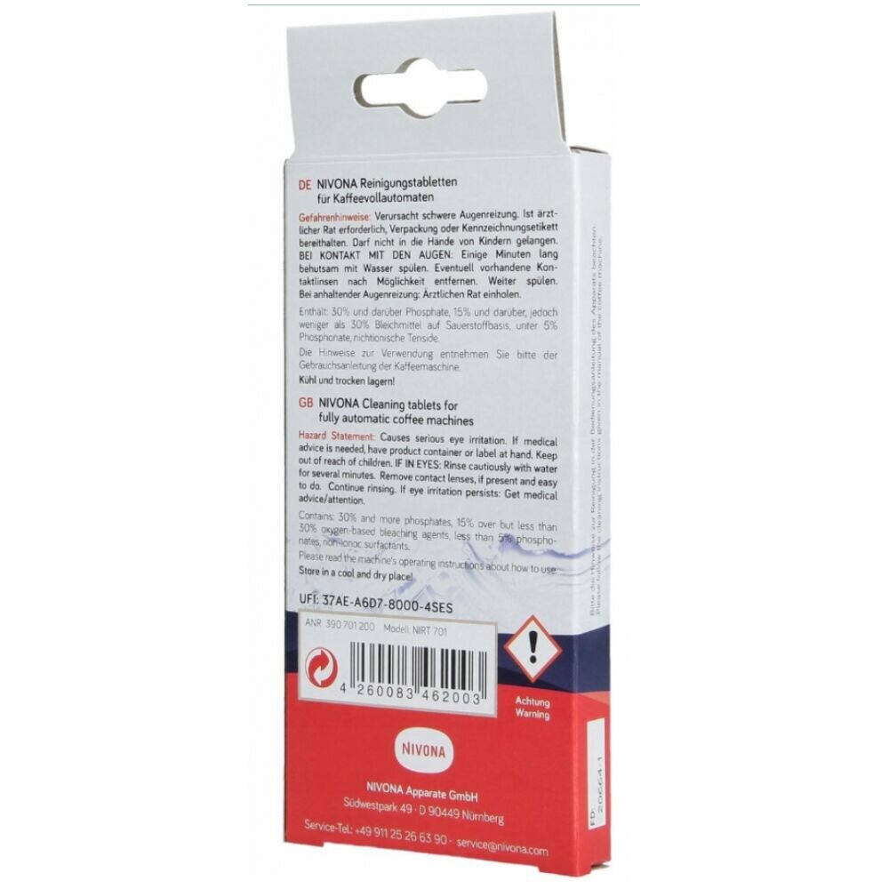 Очищающие таблетки Nivona NIRT 701, для кофемашин, 10 шт, белый
