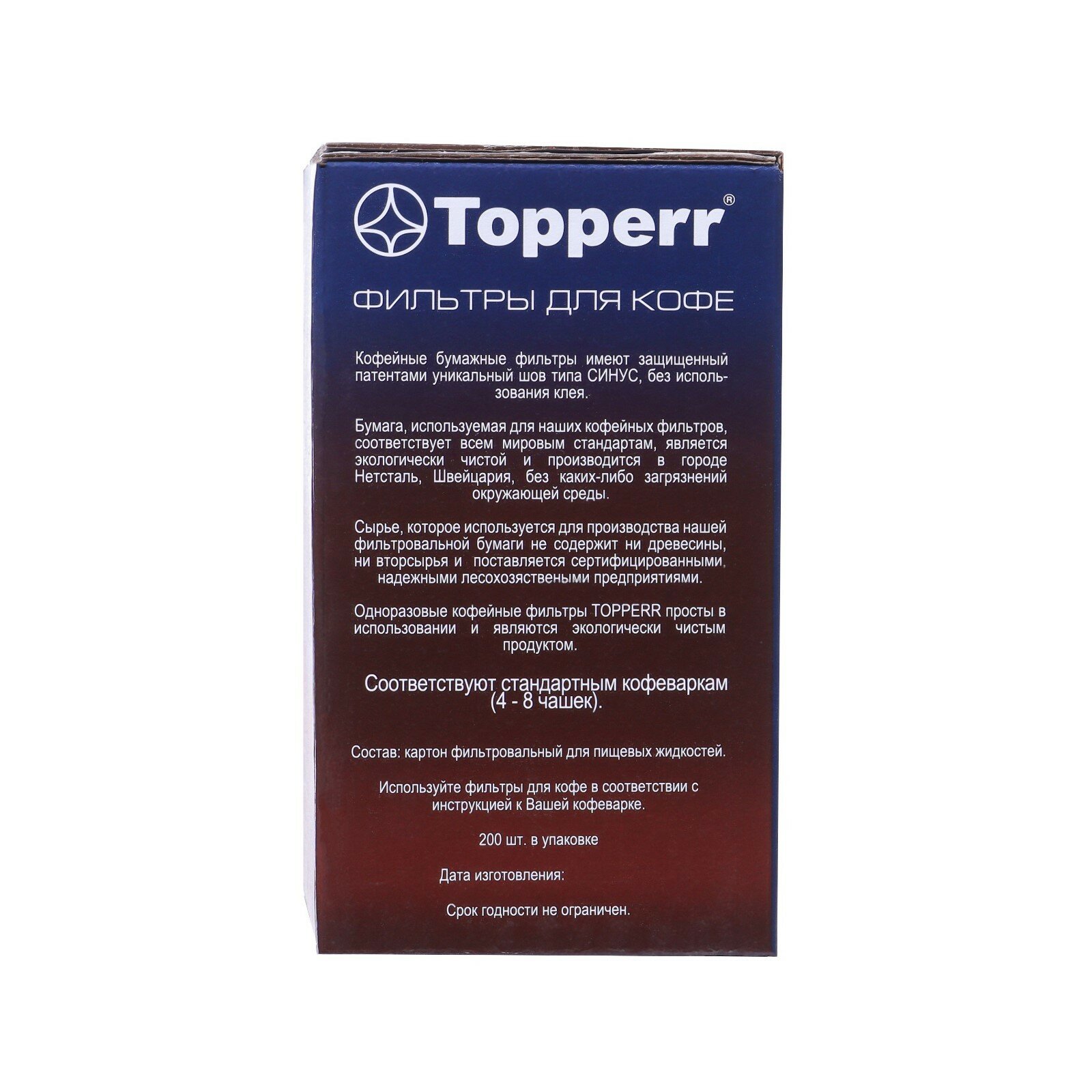 Фильтр TOPPERR №2 для кофеварок, бумажный, неотбеленный, 200 штук, 3049 В комплекте: 1шт.