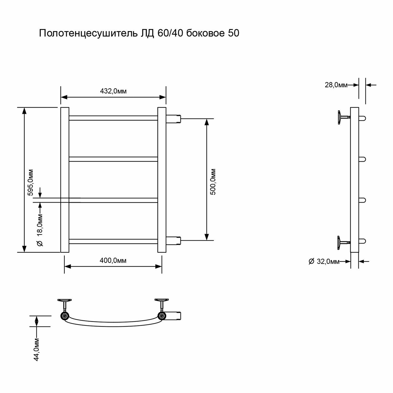 Полотенцесушитель ZOX ЛЦ 60x40 5 перекладин дуга боковое подключение