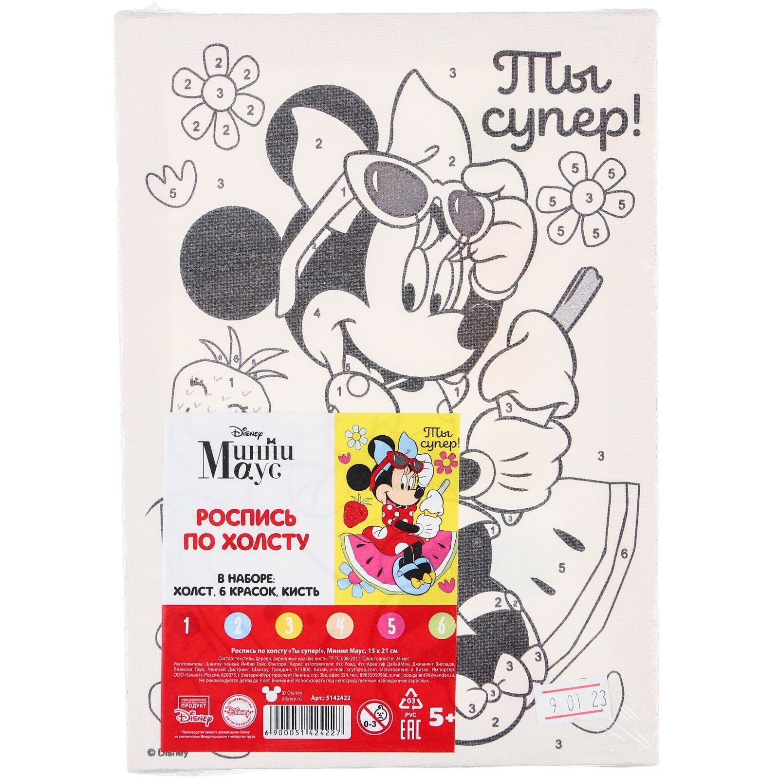 Картина по номерам для детей, 21х15 см, Минни Маус интересное: