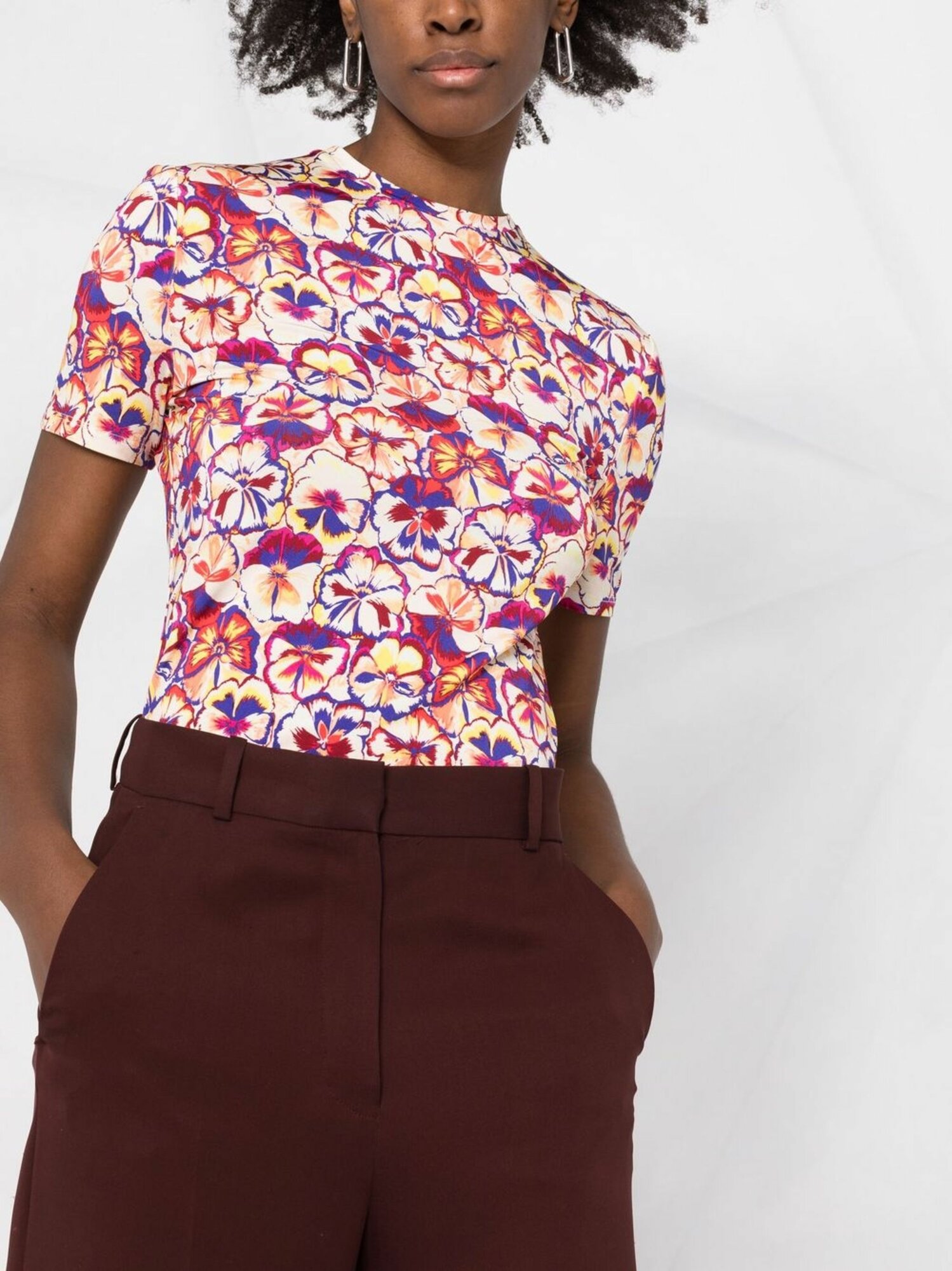 Rabanne - футболка с короткими рукавами с цветочным принтом - Женский - 36 - Темно-розовый интересное:
