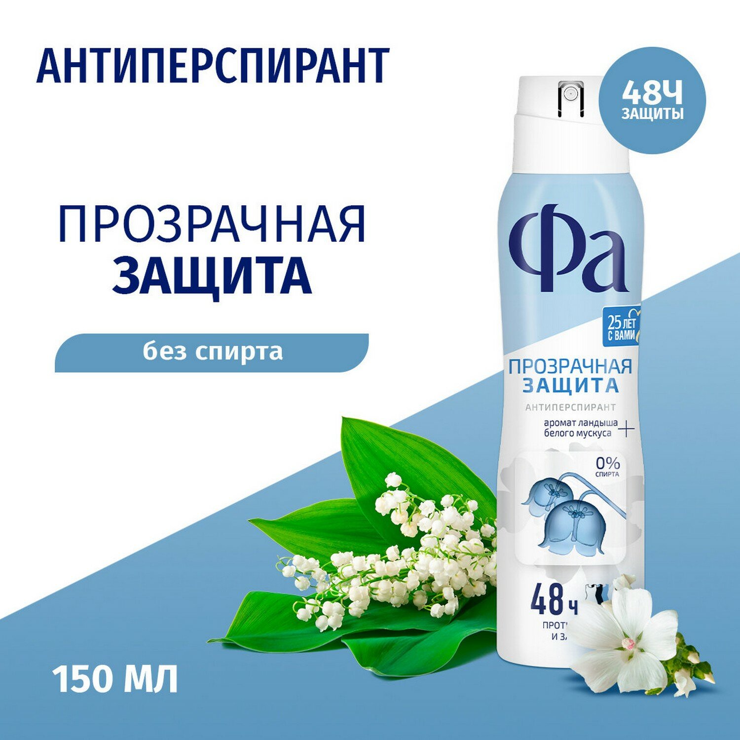 Аэрозоль дезодорант-антиперспирант Fa Прозрачная защита 48 ч, 150 мл