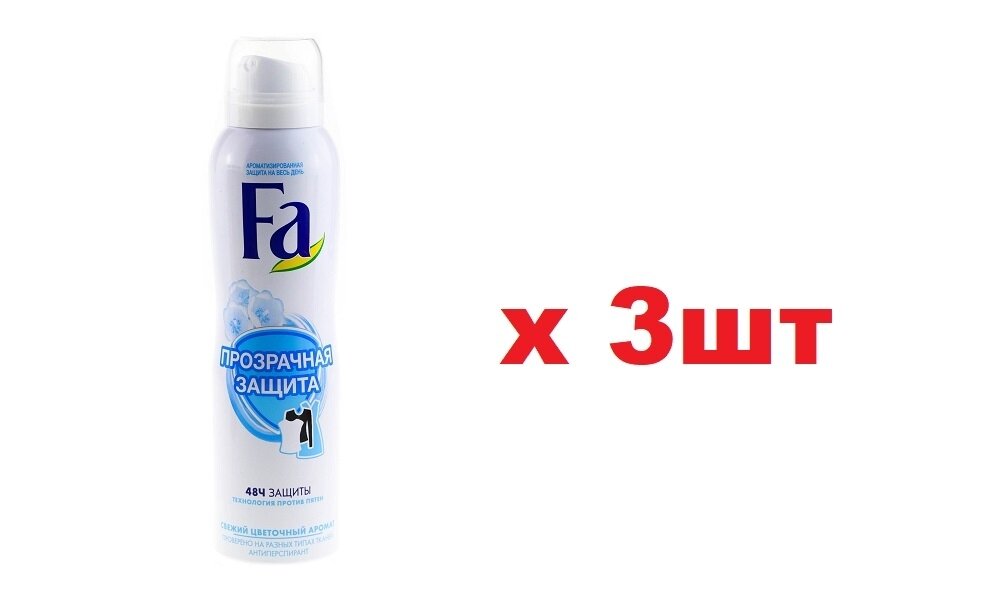 Ниже Вы можете прочитать отзывы на Fa Антиперспирант женский спрей Прозрачная защита, 150 мл, 3 шт, ознакомится с подробными характеристиками, посмотреть интересные обзоры и фотографии на Fa Антиперспирант женский спрей Прозрачная защита, 150 мл, 3 шт.