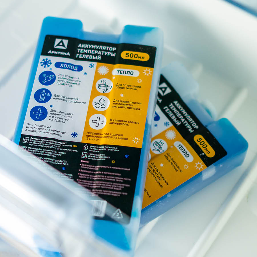 Гелевый аккумулятор температуры тепла и холода для термосумки и термоконтейнера Арктика АХТ-500, хладоэлемент 500 мл.