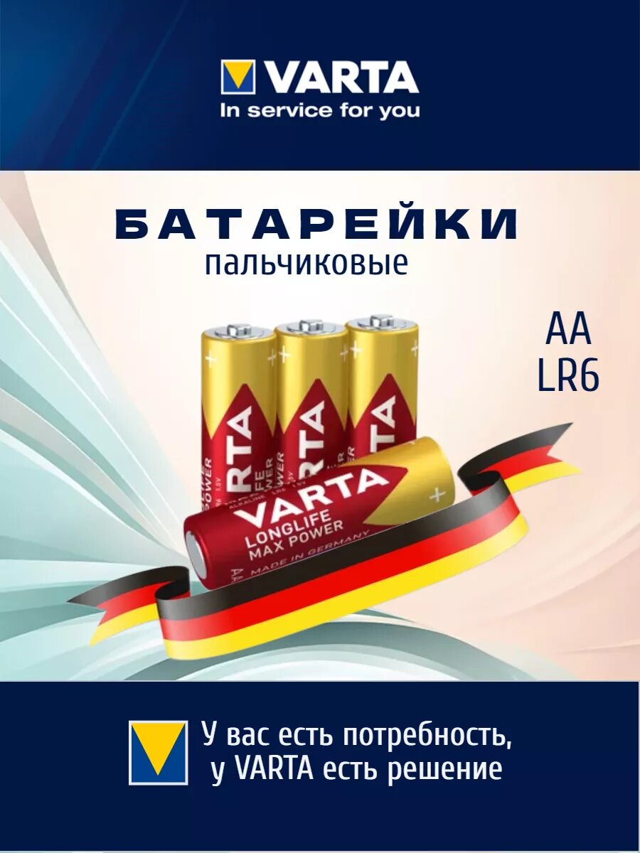 Батарейка VARTA LONGLIFE Max Power AA, в упаковке: 4 шт.