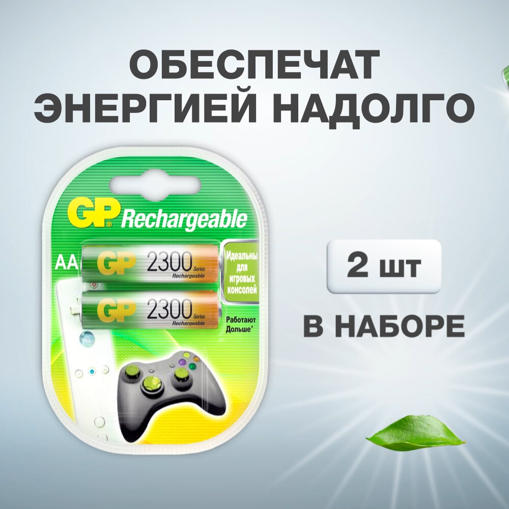 Купить Батарейки АА аккумуляторные пальчиковые GP, аккумуляторы 2300 мАч Ni-Mh, набор 2 шт