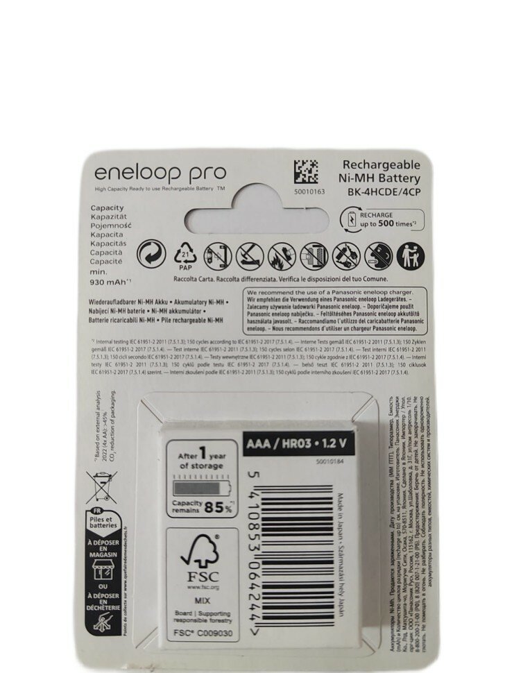 Аккумулятор Panasonic eneloop pro BK-4HCDE/4BE 930mAh AAA BL4, упаковка 4 шт.