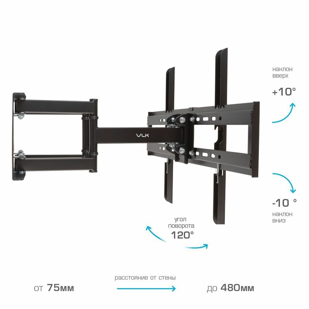 Купить Кронштейн для телевизора настенный наклонно-поворотный VLK TRENTO-9 / до 90 дюймов / vesa 600x400