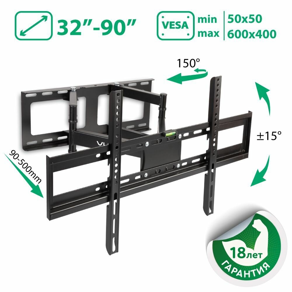 СохранитьКронштейн для телевизора настенный наклонно-поворотный VLK TRENTO-9 / до 90 дюймов / vesa 600x400 интересное: