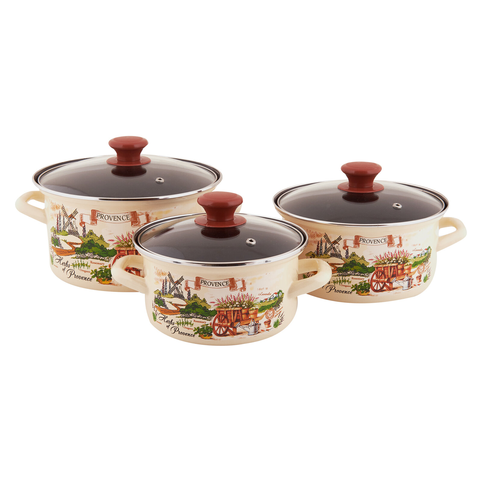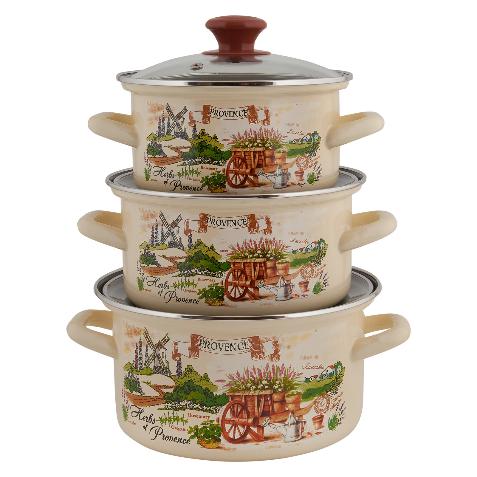 Набор посуды эмалированная сталь, 6 предметов, кастрюли 1.5,2.3,3 л, Керченский металлургический завод, Травы Прованса-1-Экстра