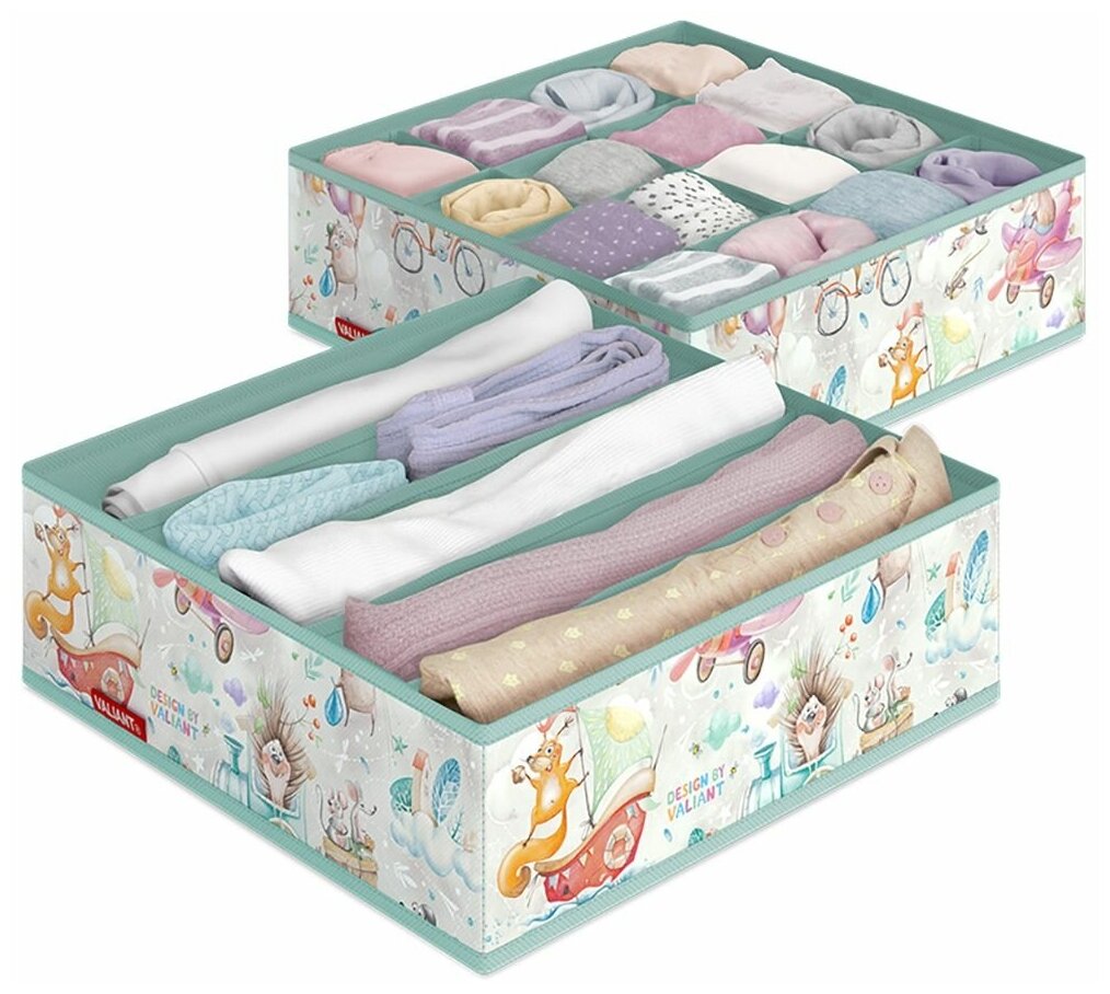 Органайзер для белья Valiant Путешастики, 32 x 32 x 10 см, набор 2 шт
