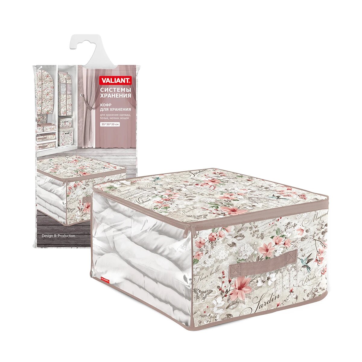 Кофр для хранения Valiant Jardin, с застёжкой-молнией, 35 x 30 x 20 см