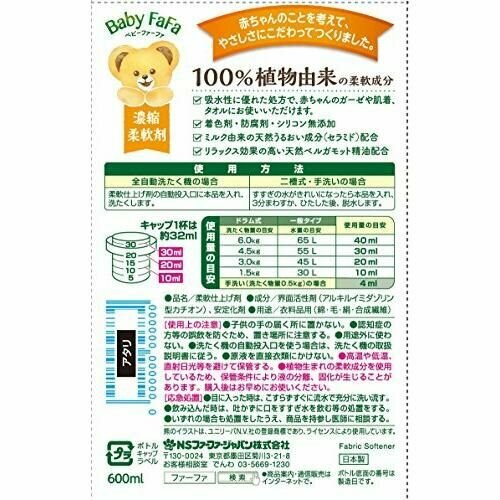Кондиционер ополаскиватель для белья детский Япония 540 мл Nissan FaFa с маслом бергамота и молочными церамидами