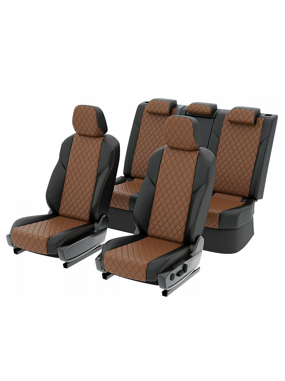 Купить Чехлы для Ниссан Кашкай 2006-2013 ClickAuto Экокожа с ромбом Черный Коричневый 2 строчки CA1321CF2S498