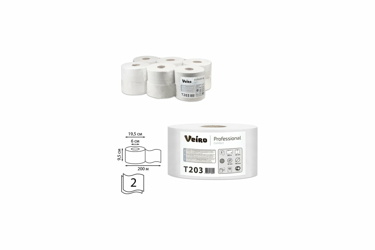 Туалетная бумага в рулонах Veiro Comfort 2 слоя, 1 рулон, 200 м., T203
