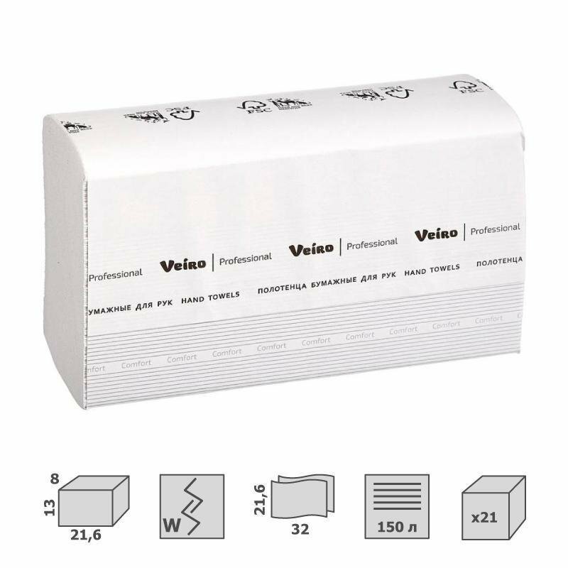 Купить Полотенца бумажные Veiro Professional Comfort KW208, W-сложение, 21 пачка по 150 листов, белые, 32*21.6 см