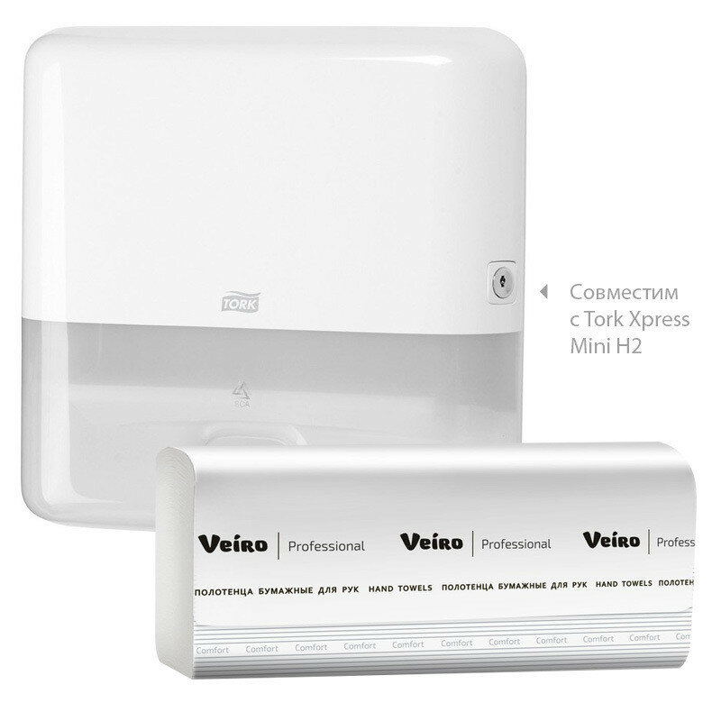 VEIRO PROFESSIONAL Полотенца бумажные 150 шт, Система H2, комплект 21 шт, Comfort, 127080
