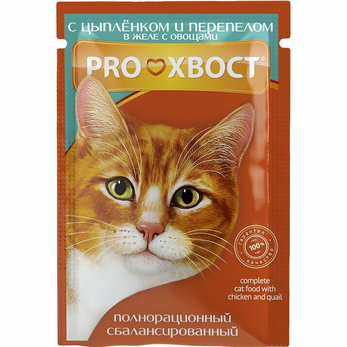 СохранитьВлажный корм для кошек proхвост с цыпленком и перепелом в желе с овощами сашет 85 г 28шт интересное: