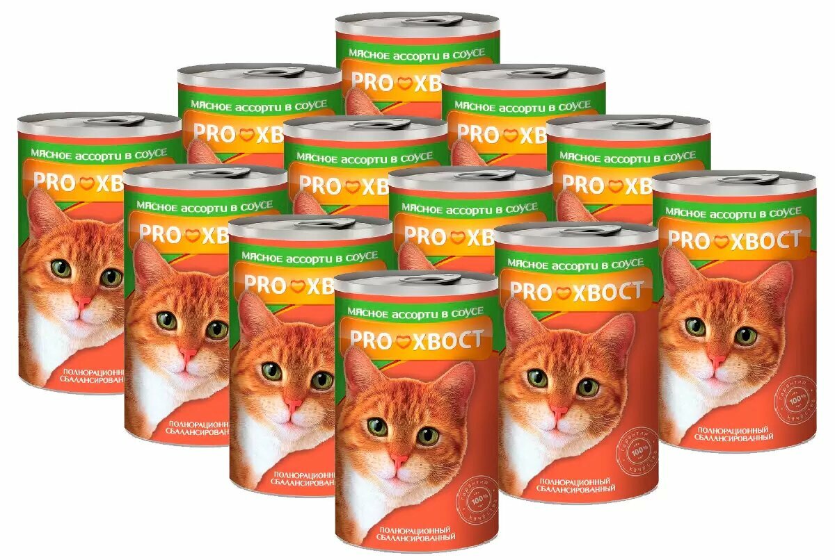 Консервы для кошек, proхвост, 415г., мясное ассорти в соусе, 1 шт.