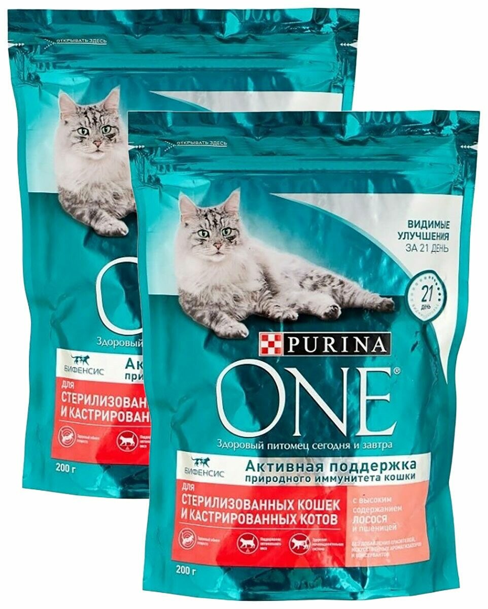 Сухой корм Purina ONE для стерилизованных кошек и кастрированных котов, с высоким содержанием лосося, 200 г 2 шт
