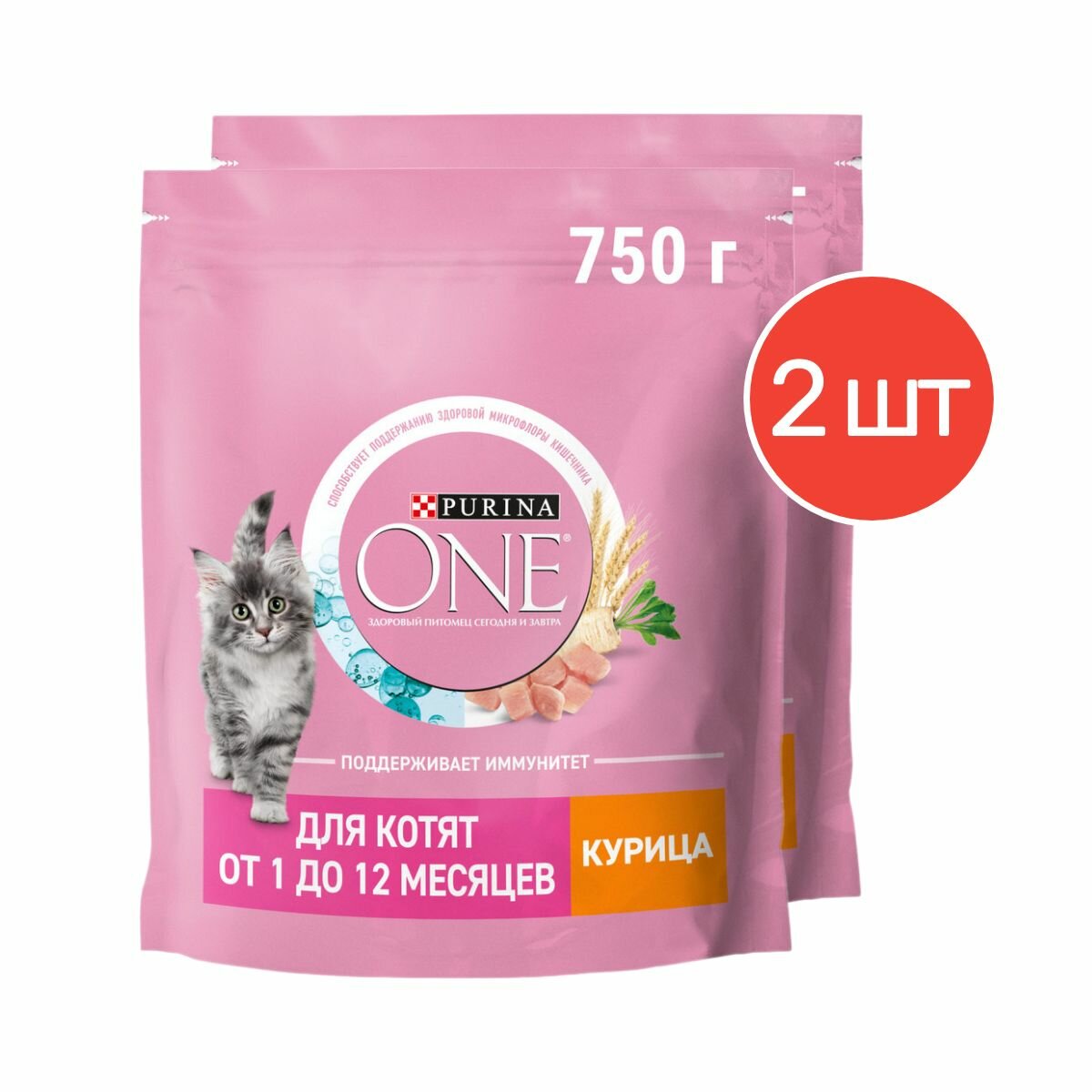 Сухой корм Purina ONE для котят с курицей и цельными злаками, 750 г, 2 шт