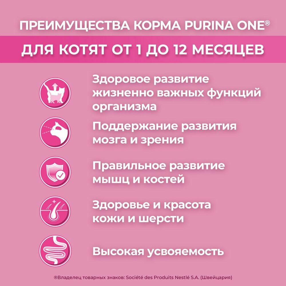 Сухой корм PURINA ONE полнорационный для котят от 1 до 12 месяцев, с высоким содержанием курицы, 750 г