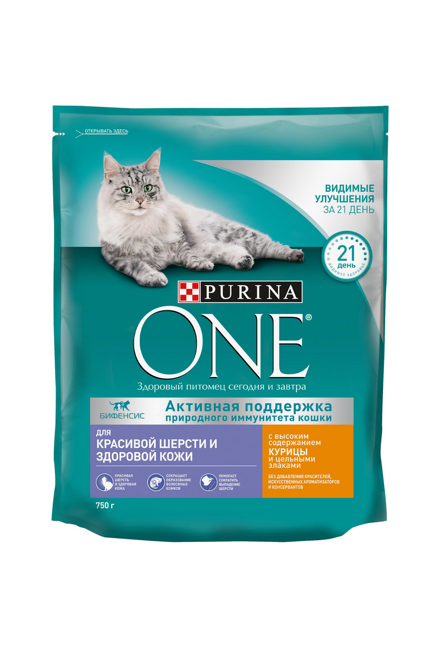 СохранитьPURINA ONE 750 г сухой корм для взрослых кошек для красивой шерсти, здоровой кожи и контроля образования волосяных комков, с высоким содержанием курицы и цельными злаками интересное: