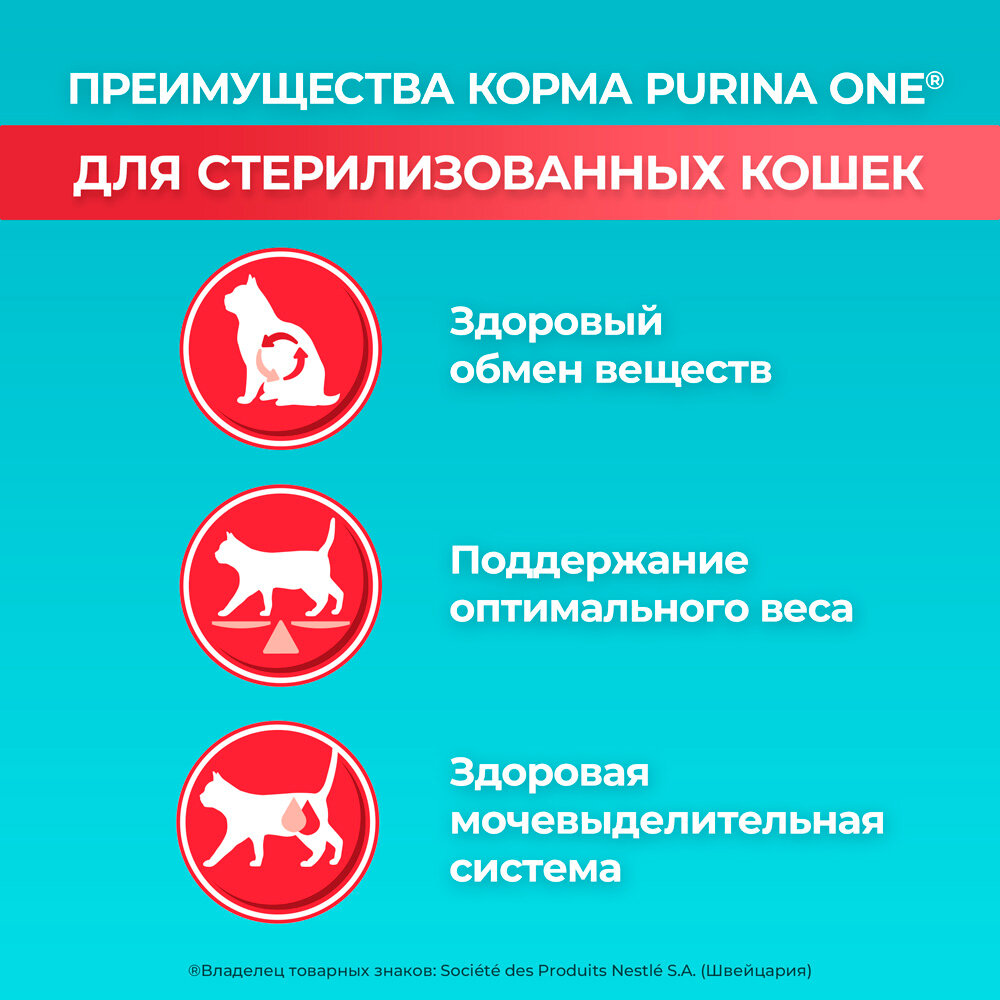 Сухой корм Purina ONE для стерилизованных кошек и котов с говядиной и пшеницей, 750 г, 4 шт