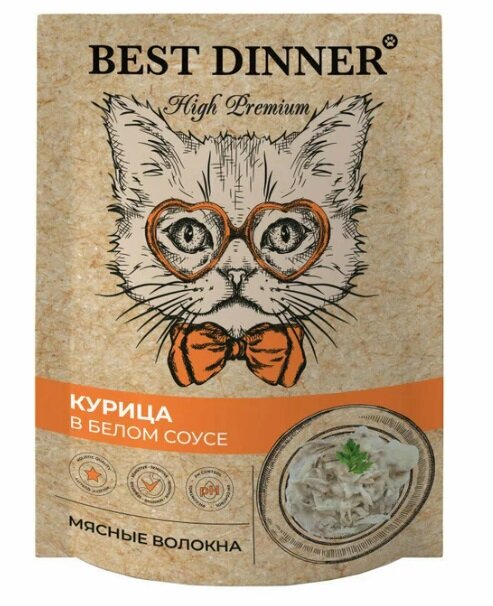 BEST DINNER HIGH PREMIUM для взрослых кошек c курицей в белом соусе (85 гр х 24 шт)