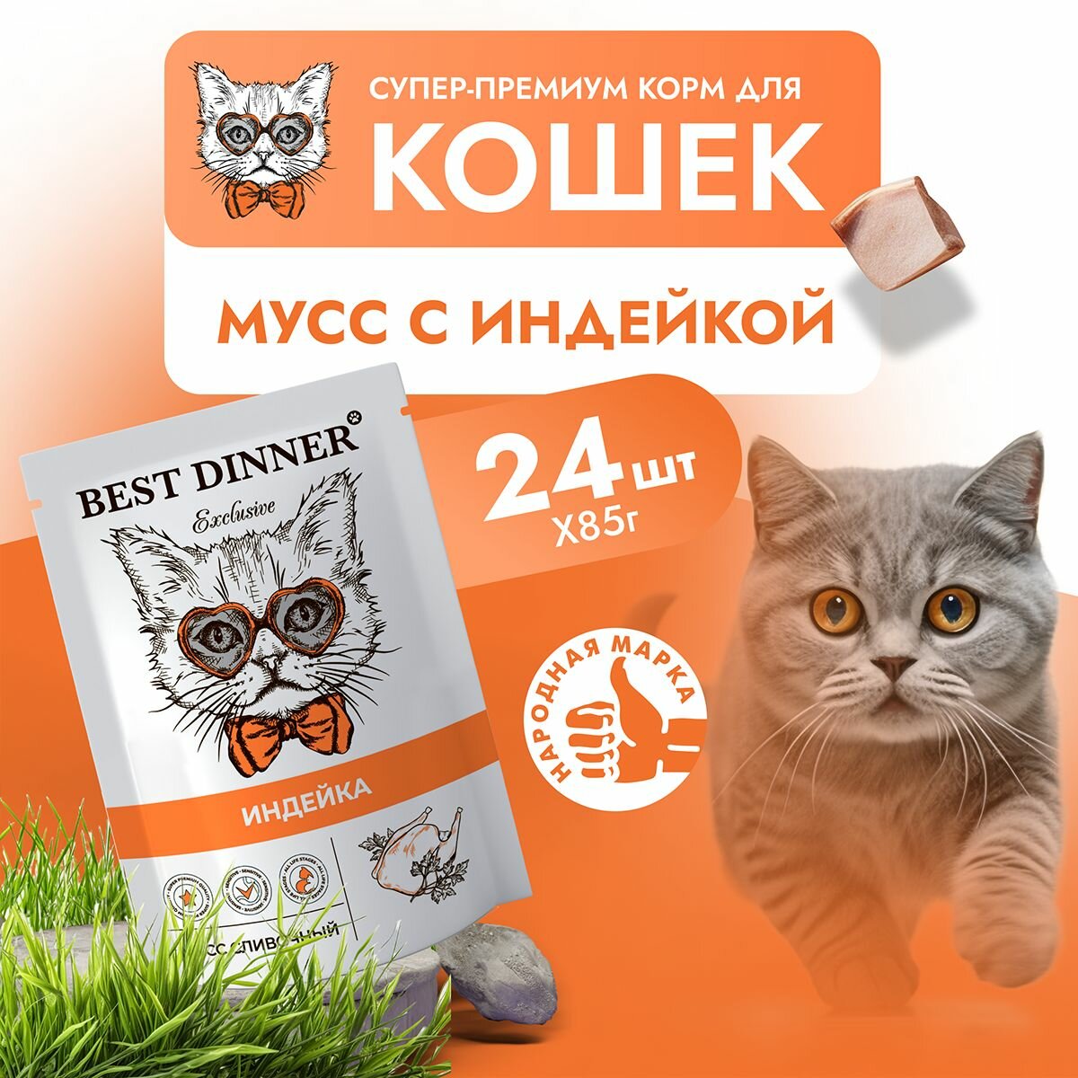 BEST DINNER EXCLUSIVE для кошек и котят сливочный мусс с индейкой 85 гр (85 гр х 24 шт)
