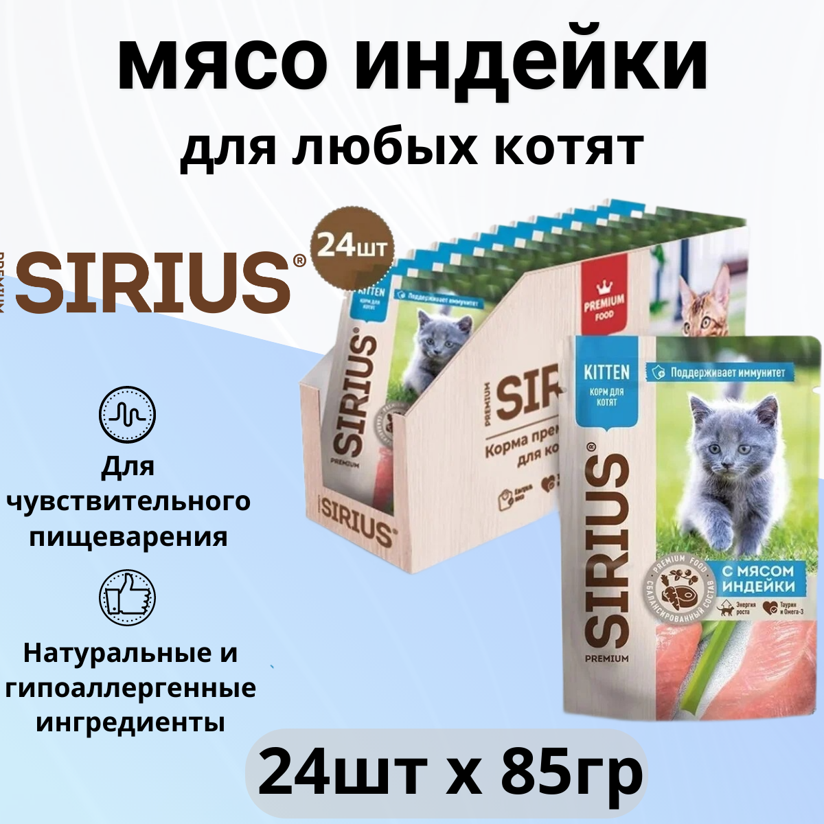 SIRIUS Premium пауч для котят с мясом Индейки 24х85г