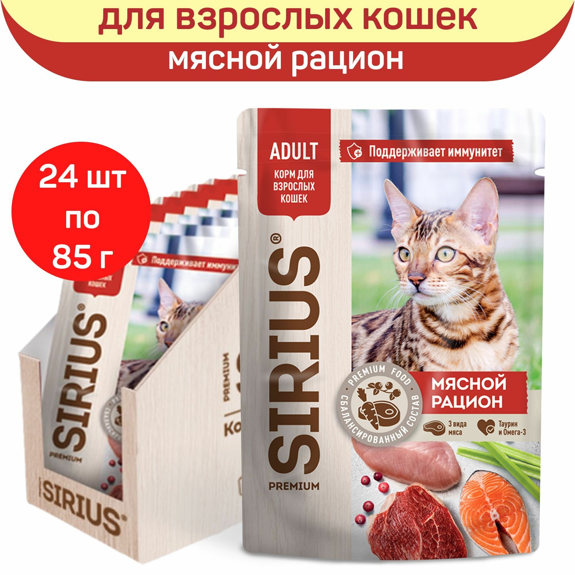 Купить SIRIUS Пауч Мясной рацион для кошек 85г(24 пауча)