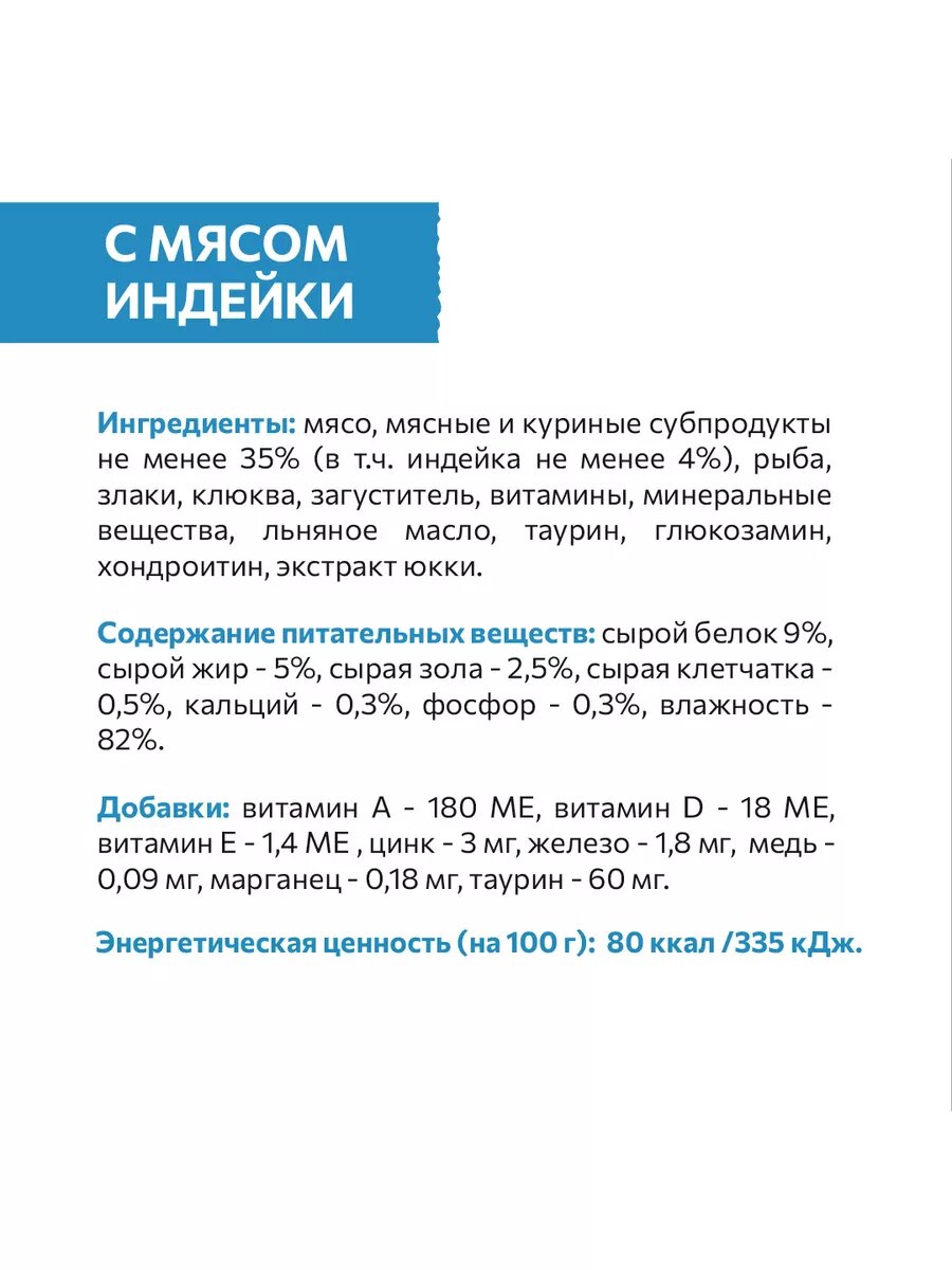Влажный корм SIRIUS для кошек, индейка с черникой, пауч, 85гр*24шт