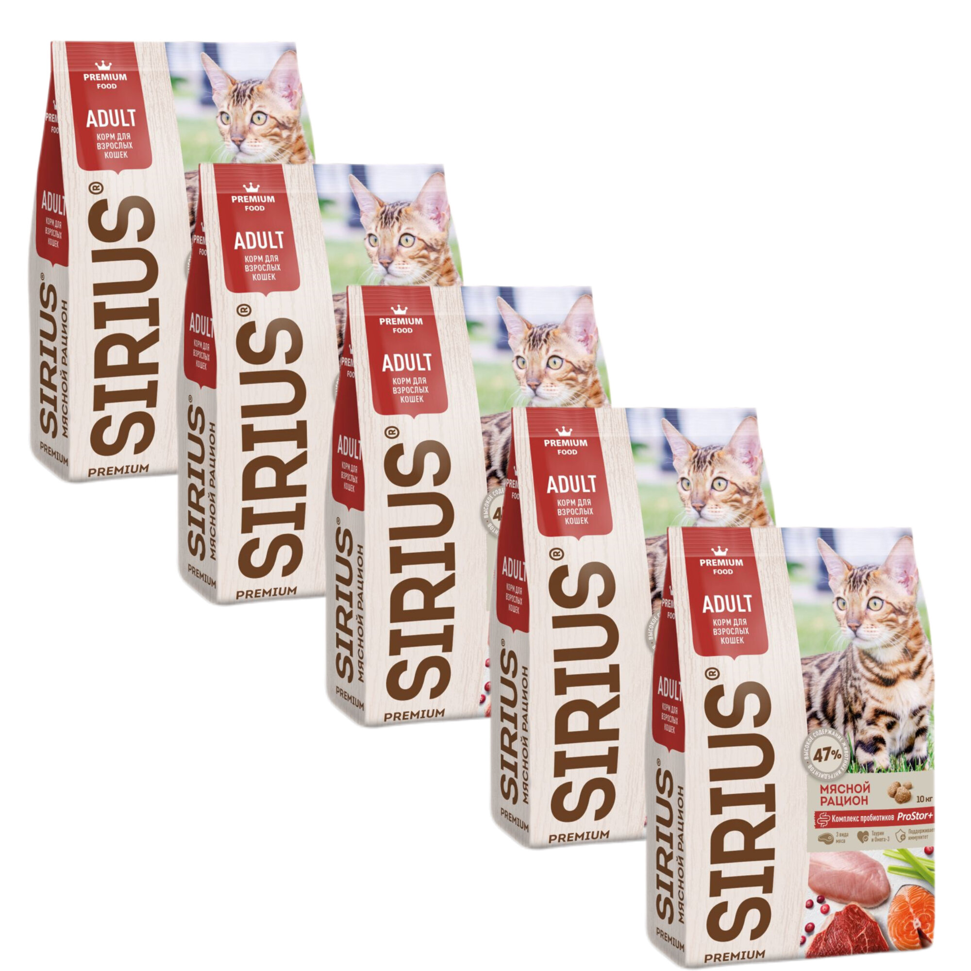 Купить Сухой корм SIRIUS (Сириус) для взрослых кошек, Мясной рацион, 5 шт по 400г