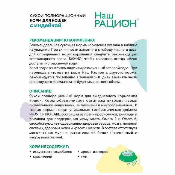 Наш Рацион 45786 сух.для кошек с Индейкой 400г, 91882 (2 шт)