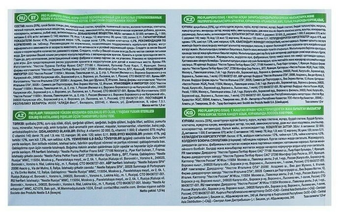 Сухой корм PRO PLAN для стерилизованных кошек, поддержание органов чувств, лосось, 1.5 кг Pro Plan 4