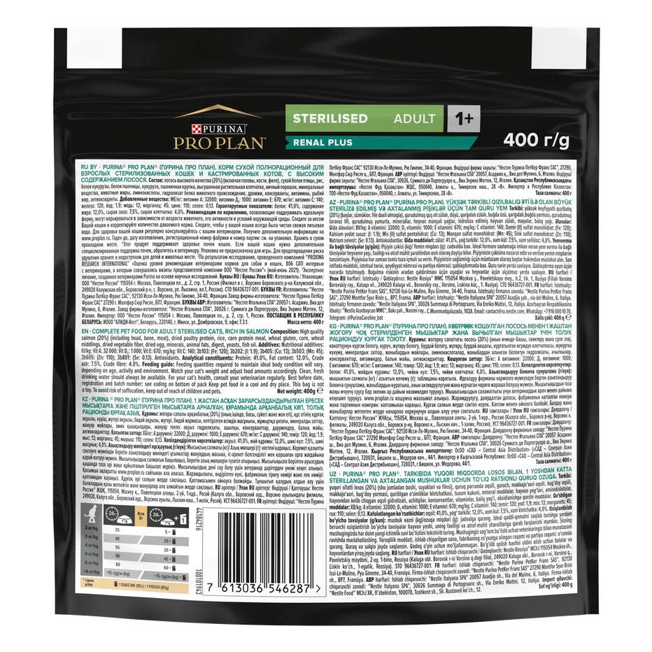 Корм для кошек PRO PLAN sterilised для под. органов чувств у стерилизованных, с лососем сух. 400г