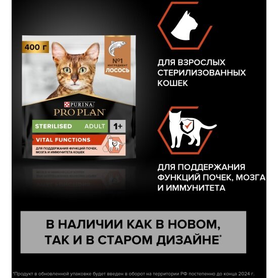 Pro Plan корм для стерилизованных кошек всех пород и возрастов, для поддержания органов чувств 400 гр